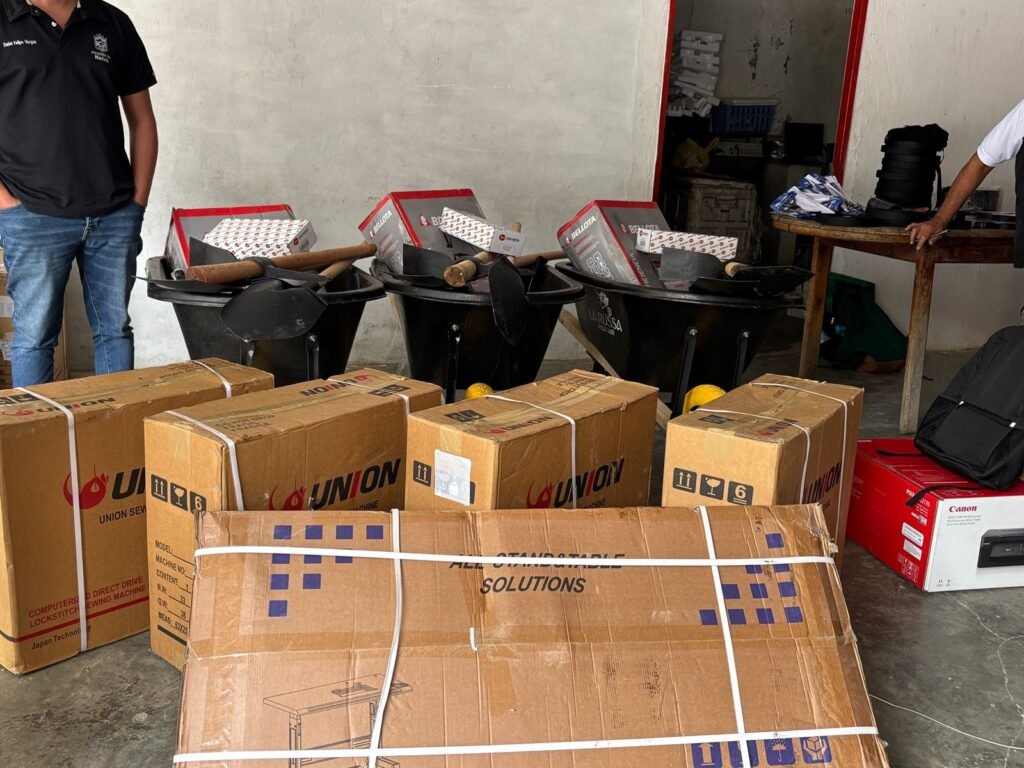 Se destacan máquinas de coser eléctricas, fibra natural, herramientas agrícolas y equipos tecnológicos que permitirán fortalecer procesos organizativos y comerciales.